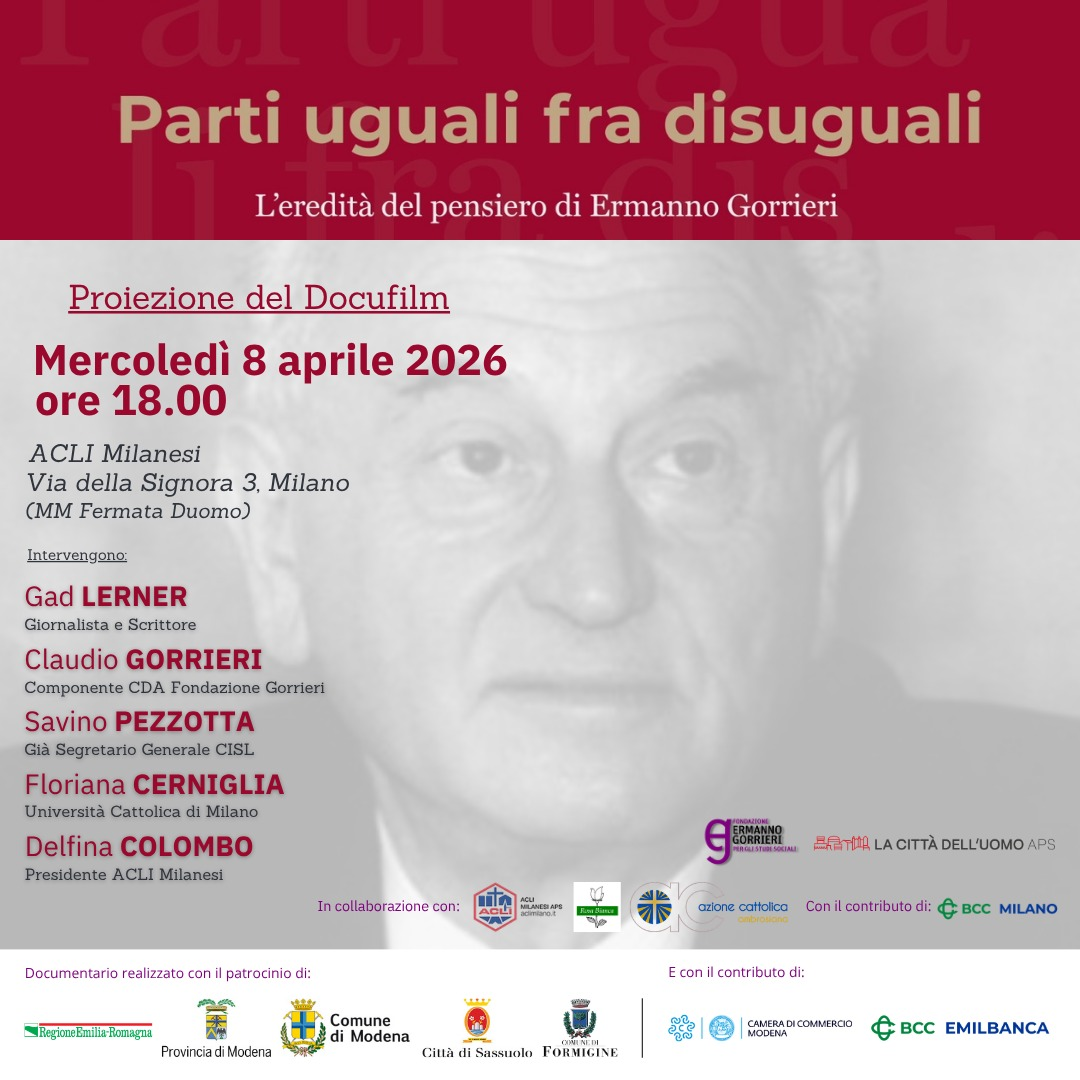 La Città dell’uomo Aps con Fondazione Ermanno Gorrieri, Acli Milano (e l’adesione di Azione Cattolica Ambrosiana e della Rosa bianca) invitano alla proiezione del Docufilm